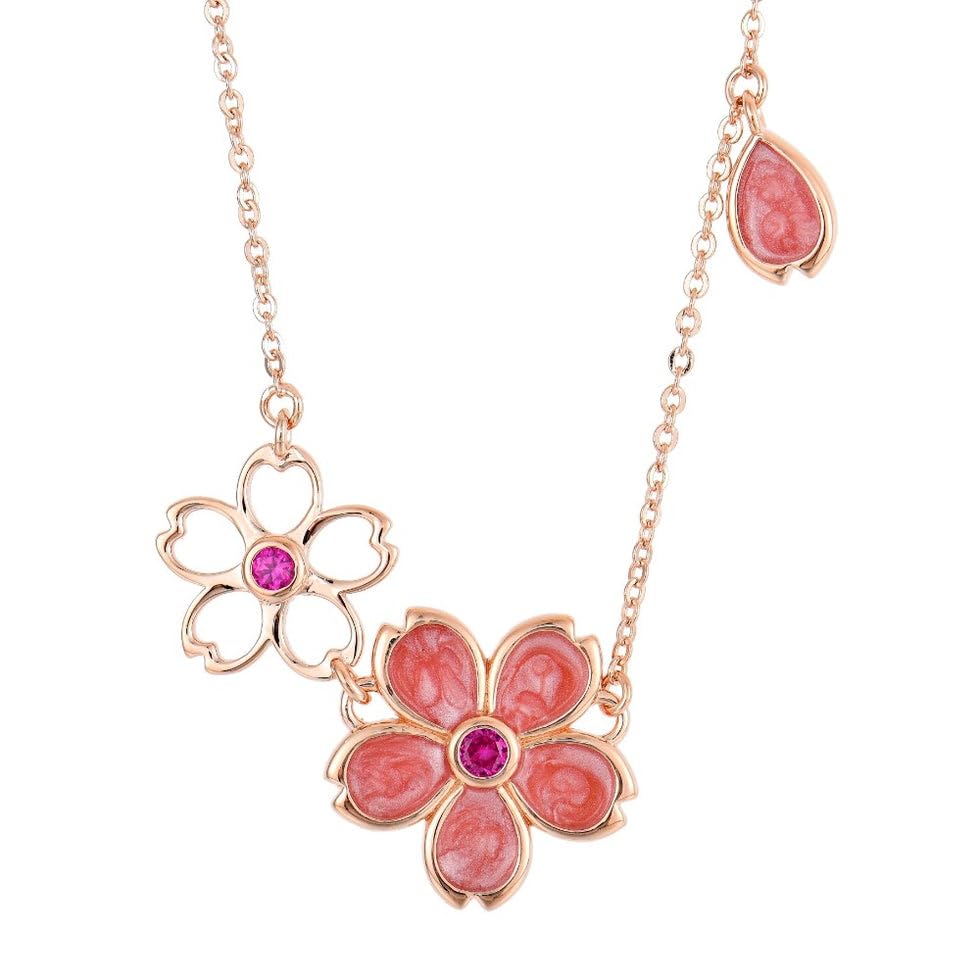 Generic - عقد من الفضة الاسترلينية عيار 925 بتصميم زهرة وردية، الزهرة محاطة بإطار ذهبي، مما يضيف لمسة من الفخامة