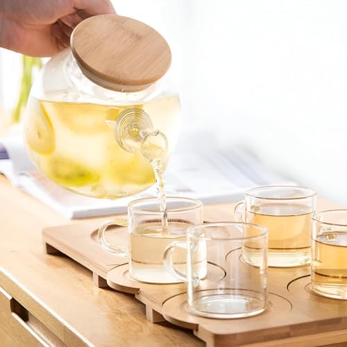 - تتضمن المجموعة إبريق زجاجي مع مصفاة مدمجة وغطاء خشبي، مما يسمح بسهولة ضخ وتقديم الأعشاب والشاي والمشروبات الأخرى، مما يجعلها مثالية للمستخدمين المهتمين بالصحة الذين يفضلون النكهات الطبيعية الطازجة.