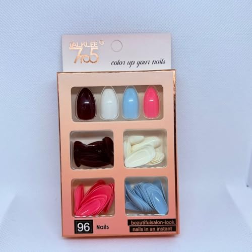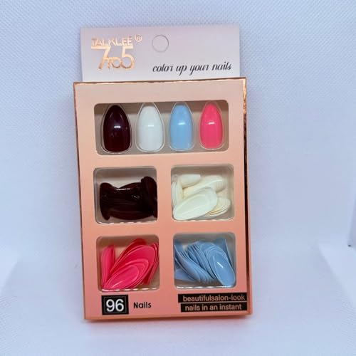 Generic - 96 قطعة من الاظافر الصناعية اللامعة بالضغط - على شكل لوز - 4 الوان مختلفة - اظافر صناعية لتغطية كاملة اظافر صناعية قصيرة بيضاوية الشكل للنساء والفتيات (صندوق 4)