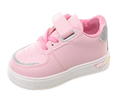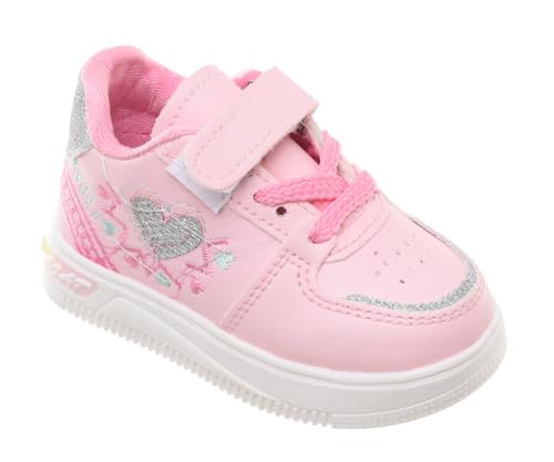 99.99 - حذاء رياضي برباط وشريط لاصق فيلكرو وتطريز جانبي وتفاصيل لامعة على مقدمة وكعب الحذاء للأطفال من 99.99، وردي (23)