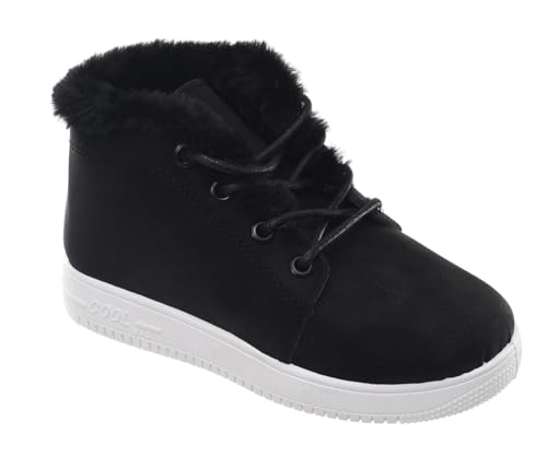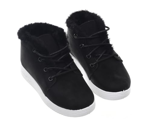 99.99 - هاف بوت جلد شمواه برباط وقبة فرو للبنات من 99.99 - اسود (مقاس 36)