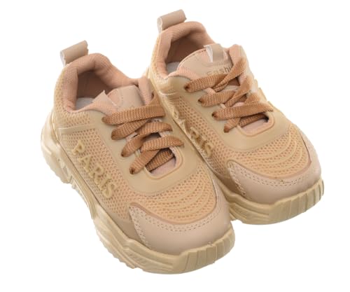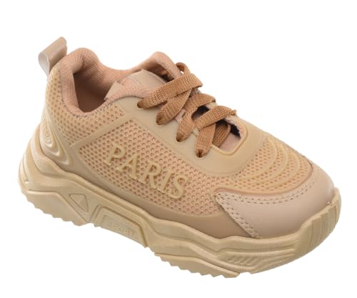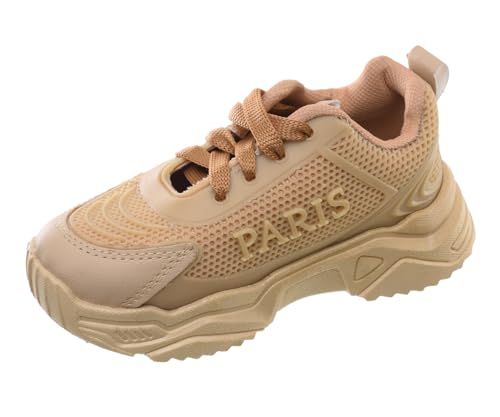 99.99 - حذاء رياضي برباط مصنوع من الجلد مع أستك علوي مزين بكلمة (Paris) على الجانب للأطفال من 99.99، لون بيج، مقاس 25 EU