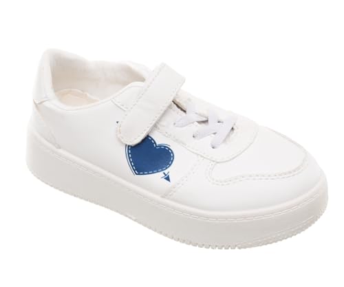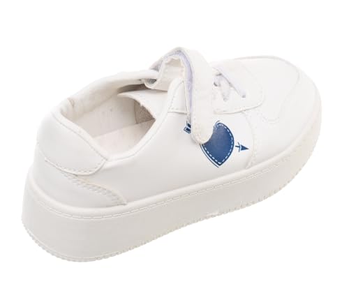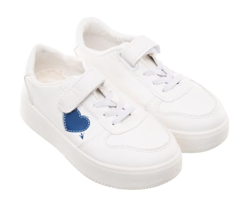 99.99 - حذاء رياضي جلد للأطفال من 99.99 مع إغلاق بلاصق فيلكرو ورسم على شكل قلب على الجانب ونعل مكتنز (أبيض وكحلي، مقاس 35 EU)