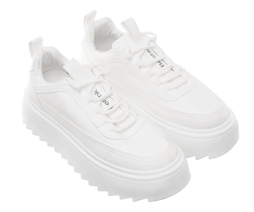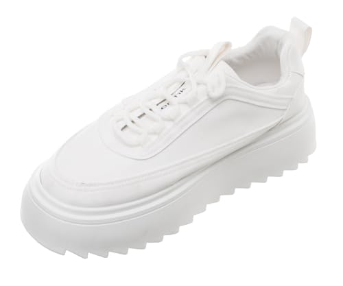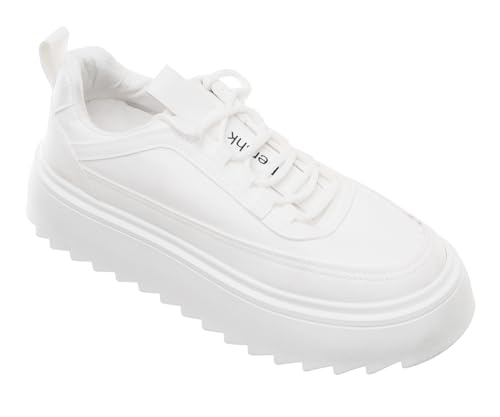 99.99 - حذاء رياضي جلد سادة برباط ونعل مزدوج عالي للرجال من 99.99 - أبيض، مقاس 43 EU