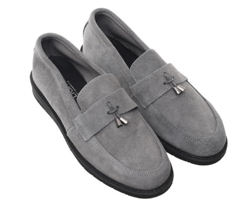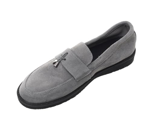 99.99 - حذاء شمواه سهل الارتداء للرجال 99.99 مع لقمة معدنية امامية ونعل مطاطي (رمادي، 44)