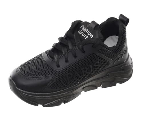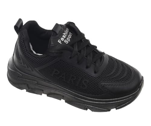 99.99 - حذاء رياضي برباط من الجلد وأستك للنساء 99.99 يتميز بنقوش جانبية "باريس" - مقاس 37 - اسود (39)