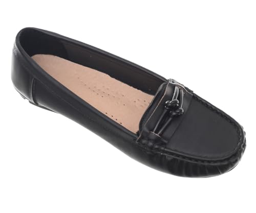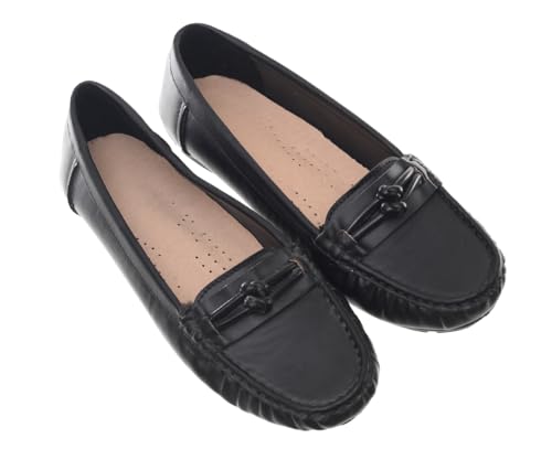 99.99 - 99.99 Women's Leather Ballet Flats with Front Leather Bow (Black, 38)