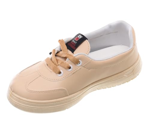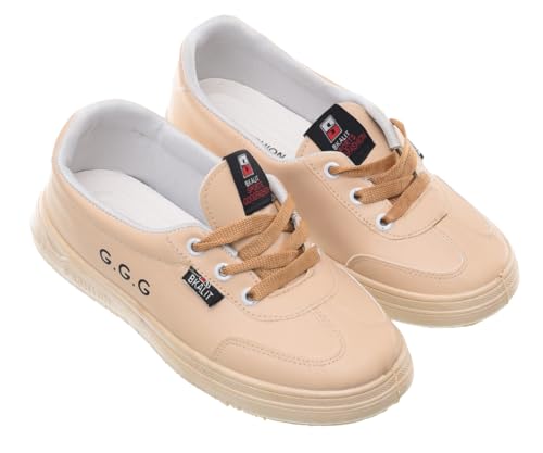 99.99 - حذاء رياضي مسطح من الجلد برباط وحروف جانبية للنساء من 99.99 - بيج (41)