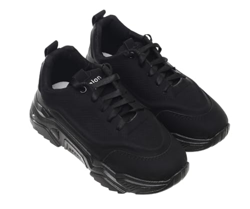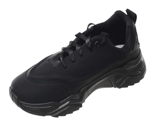 99.99 - حذاء رياضي برباط مصنوع من جلد شمواه للنساء من 99.99، لون أسود، مقاس EU 40