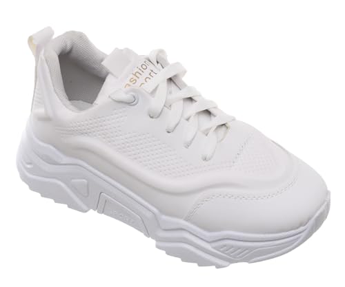 99.99 - حذاء رياضي جلد شمواه برباط للنساء 99.99 - ابيض