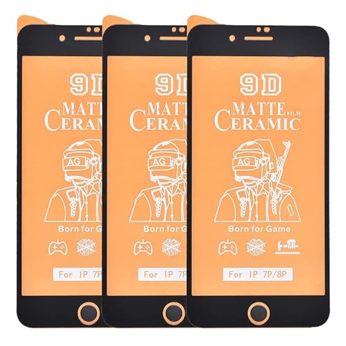 Generic - شاشة حماية من السيراميك المقوى 9D لموبايل ابل ايفون 7 بلس/8 بلس، مجموعة من 3 قطع - لون أسود