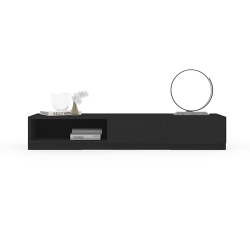 9Elements - وحدة مكتبة تلفزيون TVU-150-D-M- بلون أسود ضلفتان ورف جانبي من ناين اليمنتس- مقاس 150 سم × 45 25