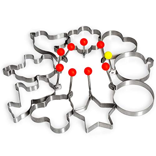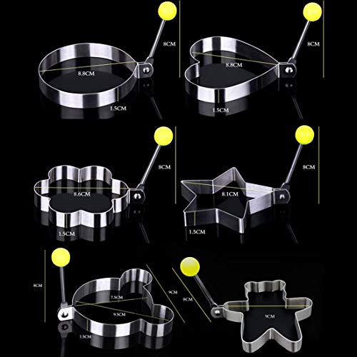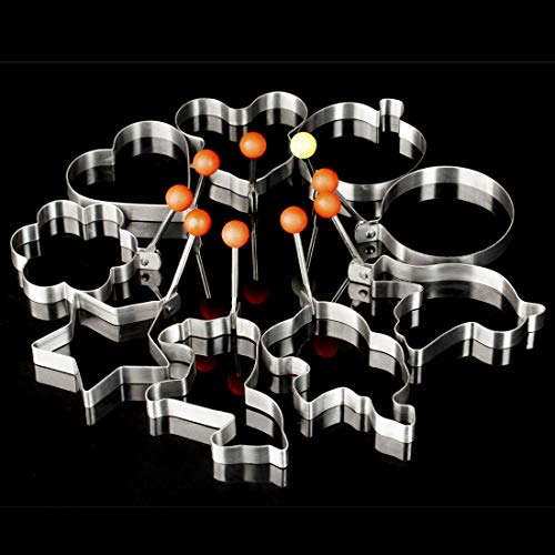 Marsrut - 9 قطع من قوالب البيض المقلي من الستانلس ستيل على شكل قلب وطائر وتفاح وحصان وزهرة ونجمة على شكل حلقة مع صندوق هدايا لصنع البانكيك والبسكويت للاطفال، ملحقات قطاعة شواء دائرية