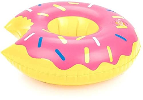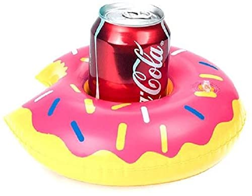 generic - حامل أكواب شرب يطفو علي سطح الماء قابل للنفخ بتصميم دونات للشاطئ باللون الوردي، طقم من 9 قطع