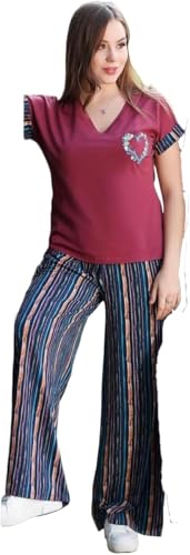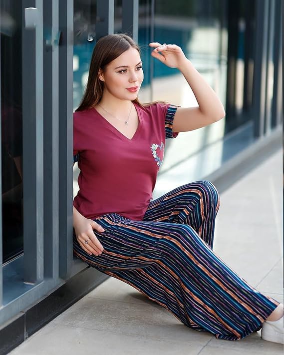 9Street Corner - بيجامة صيفية للنساء والبنات من القطن الناعم بنطلون مقلم -كود401 من 9Street Corner