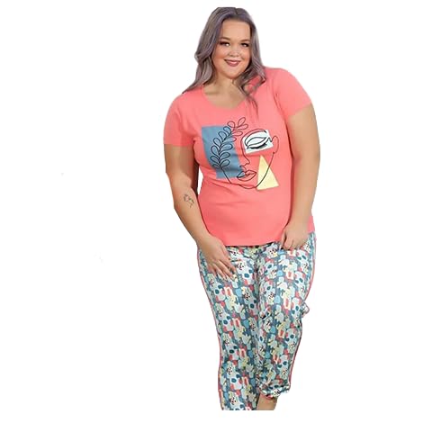 9Street Corner - بيجامة صيفية بنطلون بيج سايز من القطن الناعم للنساء والبنات كود P1007 من 9Street Corner