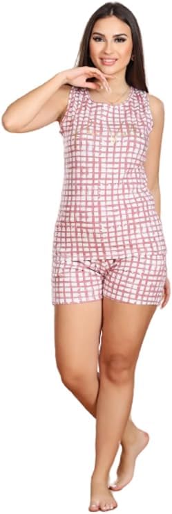 9Street Corner - بيجامة شورت + توب كروهات من القطن الناعم للنساء والبنات كود P1018 من 9Street Corner