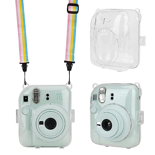 A ANTER - جراب كاميرا فوري متوافق مع كاميرا انستاكس ميني 12 الفورية مع جيب ملحقات وحزام قابل للإزالة من ايه انتر - لون شفاف A