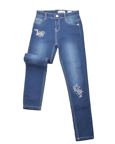 A&B - بناتي بنطلون جينز لاف ونجوم 11 سنة ازرق وسط، للفتيات