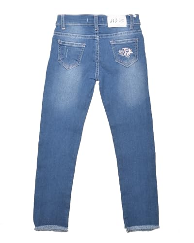A&B - اي اند بي بنطلون جينز ستيل للبنات بعمر 8 سنوات، لون ازرق، مقاس M