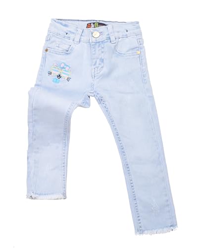 A&B - بناتي بنطلون جينز تطريز تركواز 6 أشهر ازرق فاتح، للفتيات