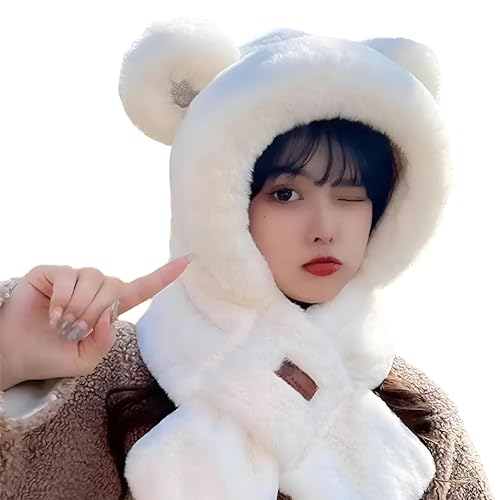 Generic - قبعة دب على الطراز الكوري سميكة ودافئة من الصوف مع وشاح واذنين مدمجين، توفر تغطية كاملة للرأس والرقبة للنساء والفتيات في الشتاء. (اختر اللون حسب الصورة)