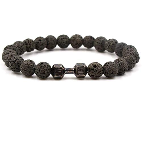Other - سوار من الحجر البركاني الأسود مع دمبل اسود، للجنسين