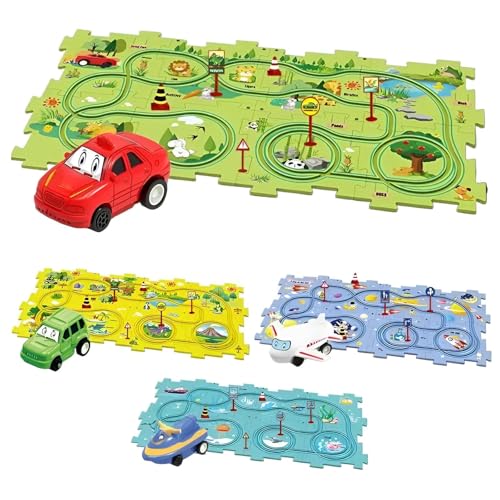 Generic - لعبة بازل لمسار السيارة..لعبة تعليمية ممتعة للاطفال - مجموعة بازل تبني مسارًا للسيارات والطائرات للأطفال، قم بتجميع القطع المتشابكة لتشكيل شبكة طرق ملونة، تشجع على التعلم