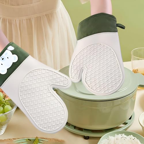 Generic - قفازات فرن من الورق المقوى بتصميم دب لطيف، مصنوعة من السيليكون المقاوم للحرارة، مضادة للانزلاق وتوفر حماية ممتازة أثناء الطهي والاستخدام المنزلي