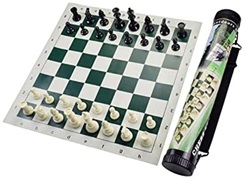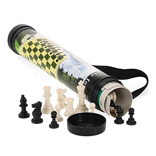 generic - مجموعة شطرنج مضغوطة مع حامل أسطواني ورقعة جلدية Amazon22333