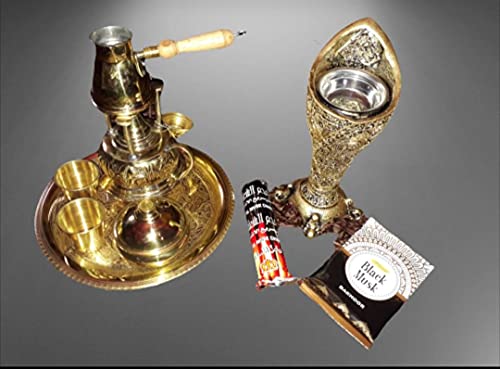 Other - طقم سبرتاية نحاس ومبخرة فحم خزف ذهبى مع اثنين كوب وصينية وركوة وسكرية وعبوة بخور وفحم سريع الاشتعال