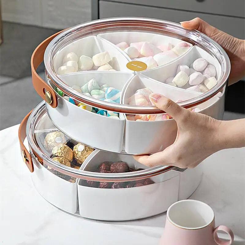 Generic - طبق تقديم الحلوى بمقبض يشبه الجلد - مقسم اكريليك 2 في 1، مناسب للاستخدام كطبق للوجبات الخفيفة او وعاء الفاكهة. جودة عالية وحجم كبير وتصميم انيق للغاية. 5 اقسام