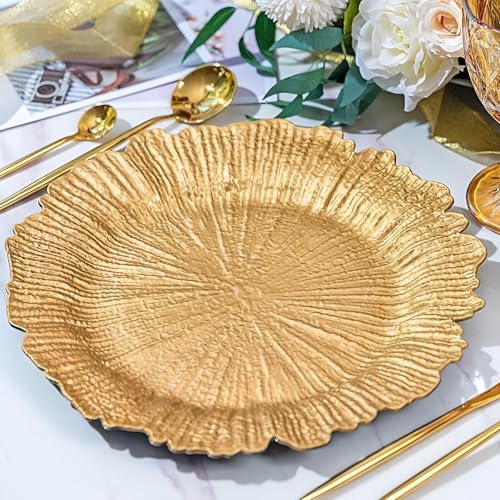- يعزز طبق العشاء المزخرف الأنيق مقاس 13 انش إعداد أي طاولة بفضل تصميمه الذهبي الفاخر، مما يجعله مثاليًا لحفلات الزفاف وأعياد العطلات والمناسبات الراقية - مما يخلق نقطة محورية مذهلة ترتقي بتجربة تناول الطعام.