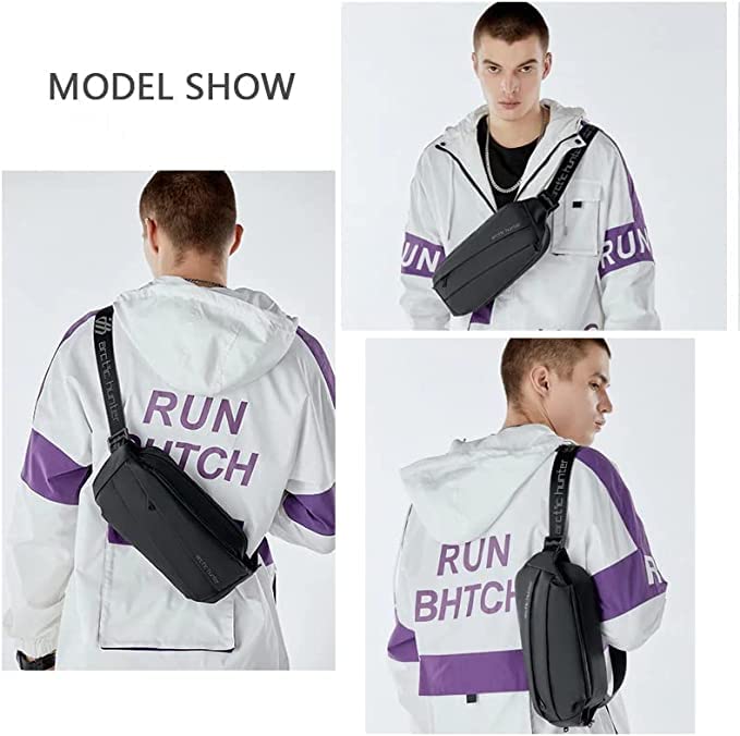 Generic - شنطة رجالى كروس كتف وسط ,مقاومة للماء - متعددة الوظائف من A H- اسود