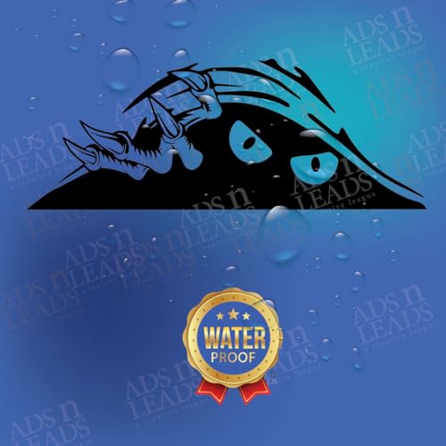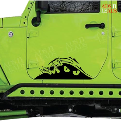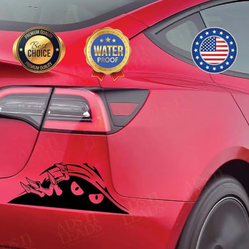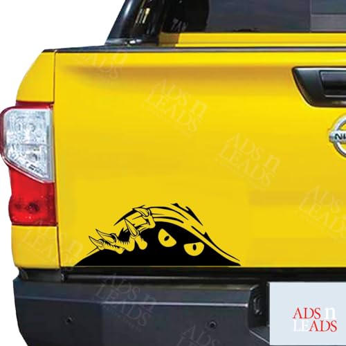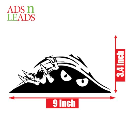 ADS N LEADS - ملصق عيون مخيفة بتصميم وحش مضحك من ايه اند ال للسيارات والشاحنات والانبعاجات والسيارات الرياضية - ملصق كبير من الفينيل بلون اسود | 9 انش (مونستر بيكابو)