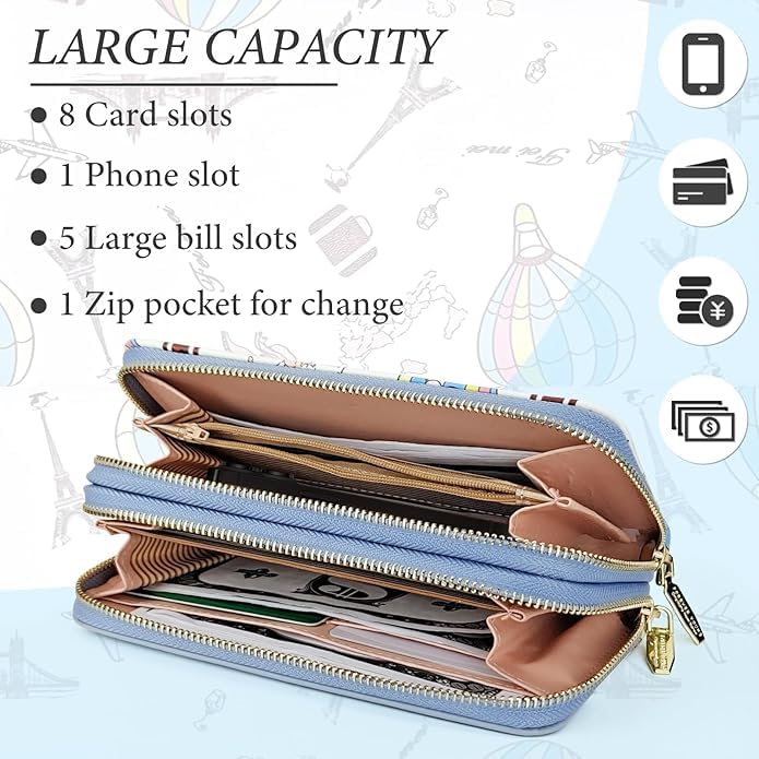 - ️ تتضمن 4 فتحات للبطاقات ومساحة تخزين طويلة وجيب واحد بسحاب، مما يجعلها مناسبة لتنظيم النقود.