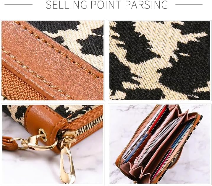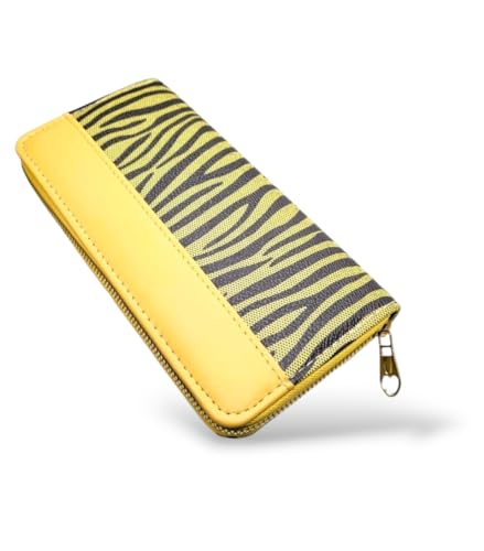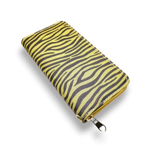 Generic - محفظة متعددة الوظائف بسوستة واحدة سعة كبيرة لحمل العديد من الكروت يد بتصميم كوري حديث رائد كروت وموبايل شنطة بحرفية عالية للنساء نمط نقشة جلد النمر 1 لون أصفر