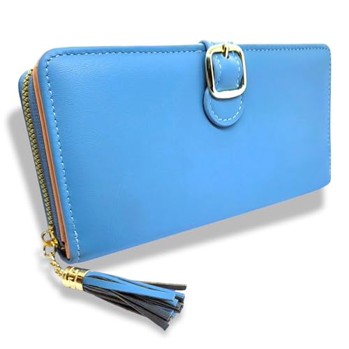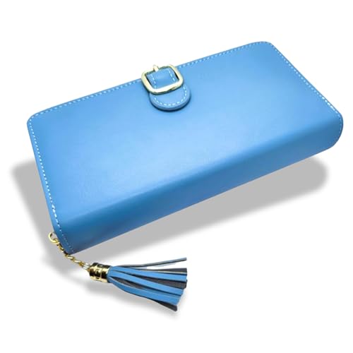 Generic - محفظة فاخرة متعددة الوظائف للنساء بسحاب واحد بسعة كبيرة تحمل العديد من البطاقات يدوية بتصميم كوري جديد حامل بطاقات شنطة يد جودة ممتازة ازرق فاتح 1