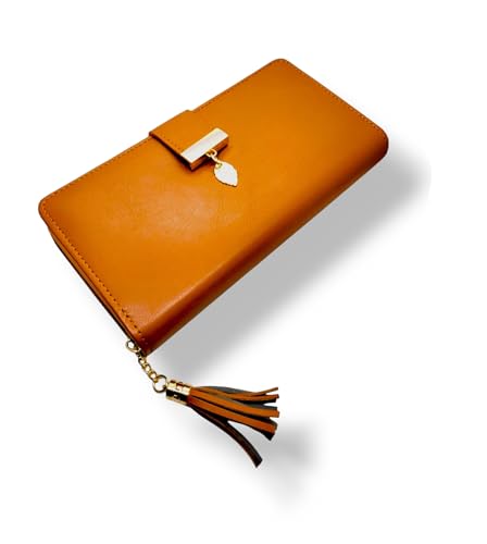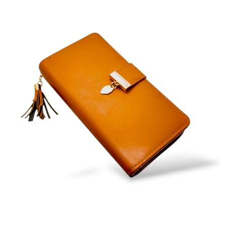 Generic - محفظة جلدية للنساء بتصميم كلاسيكي كوري، باللون البني المزخرف، متعددة الأقسام مع حامل للبطاقات والنقود