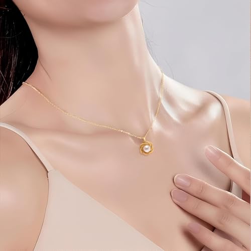 Generic - هدية ذكرى - قلادة رائعة للمياه العذبة، قلادة مصنوعة من الذهب الخالص، هدية مدروسة للنساء