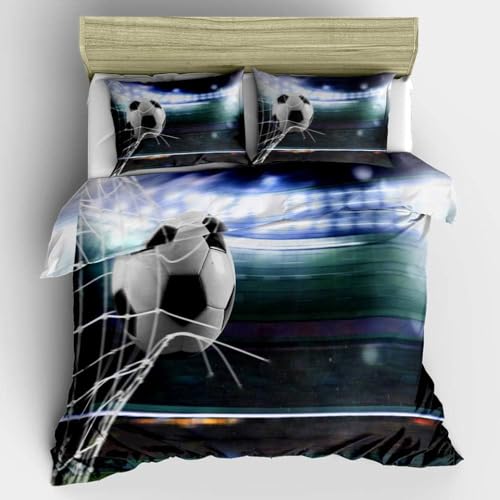 Generic - طقم 3 أغطية لحاف من القطن الخالص بتصميم ثلاثي الأبعاد، مقاس 2.3 × 2.2 متر تصميم كرة قدم ورجبي وبيسبول طقم لحاف مقاس كوين بسوستة مع 2 كيس مخدة