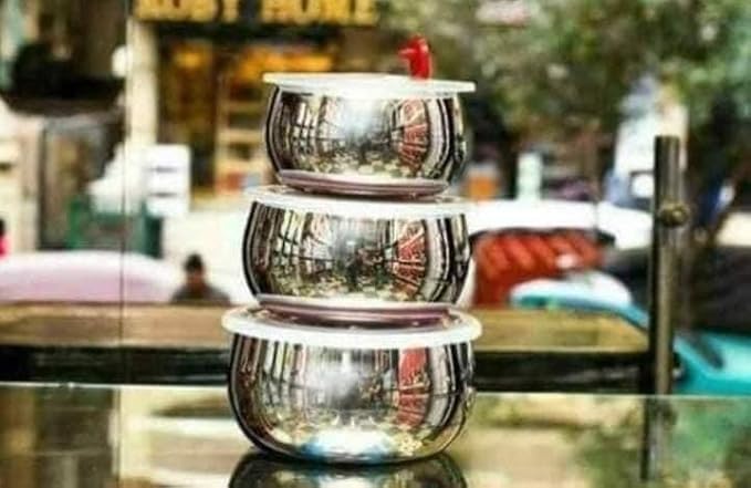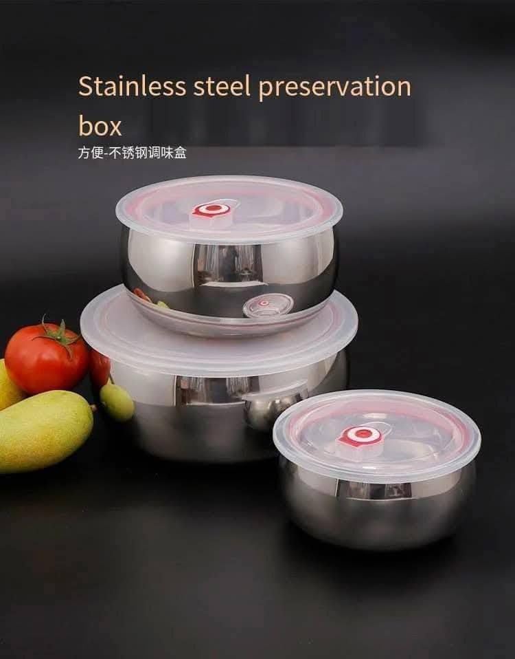 Generic - مجموعة من 3 علب ثلاجة من الستانلس ستيل (12-14-16 سم) للحفاظ على الطعام ساخنا، مع اغطية تطلق البخار الزائد