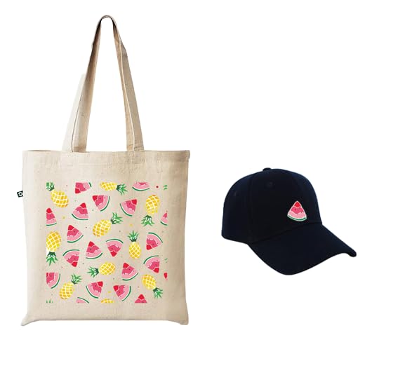 Generic - مجموعة من شنطة توت وطاقية مناسبة للرحلات والعطلات الصيفية بأشكال وألوان مميزة، أسود