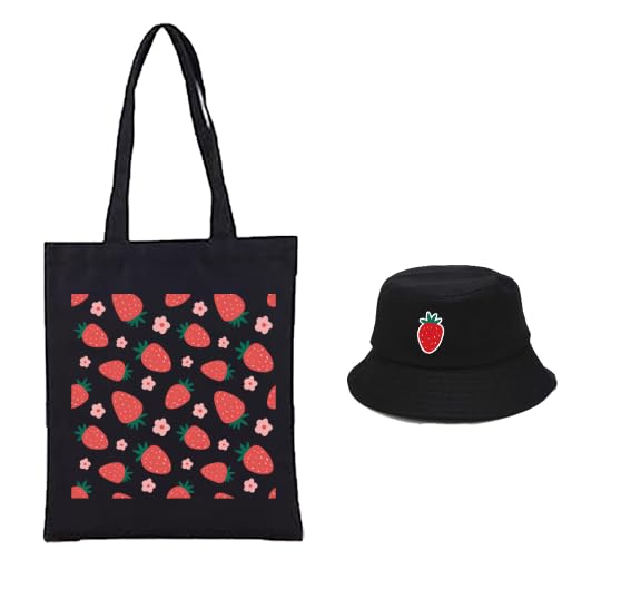 - مجموعة من شنطة توت سوداء وقبعة دلو سوداء (C) مناسبة للرحلات والعطلات الصيفية بأشكال وألوان مميزة