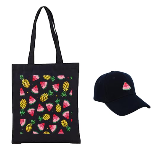 Generic - مجموعة من شنطة يد كبيرة توت سوداء وقبعة سوداء مناسبة للرحلات والعطلات الصيفية بأشكال وألوان مميزة