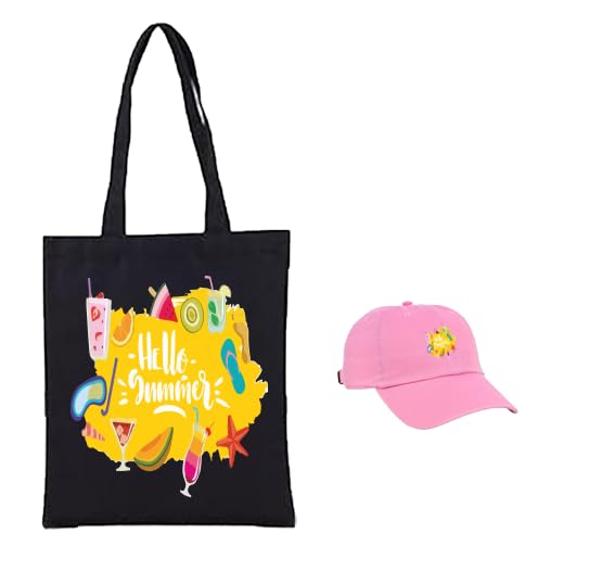 Generic - مجموعة من شنطة توت سوداء وكاب وردي (B) مناسبة للرحلات والعطلات الصيفية باشكال وألوان مميزة