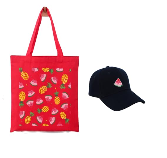 Generic - مجموعة من شنطة توت أحمر وقبعة سوداء (C) مناسبة للرحلات والعطلات الصيفية بأشكال وألوان مميزة