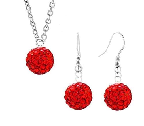 Other - طقم أقراط وسلسلة بدلاية من خليط معدني وكرة الكرستال الأحمر ، متعدد الألوان للبالغين من الجنسين