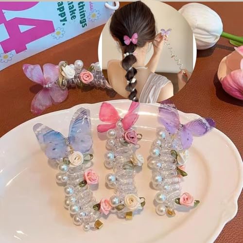- ستحصل على: 4 قطع من ربطات شعر سلك الهاتف على شكل فراشة لؤلؤية، صغيرة وخفيفة الوزن، كمية وألوان كافية لتلبية احتياجاتك اليومية