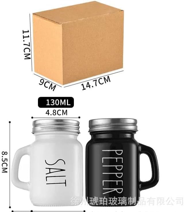 - مجموعة هزازات الملح والفلفل، ديكور مطبخ لطيف 4 اونصة للمنزل والمطاعم وحفلات الزفاف، مجموعات شيكر زجاجية باللونين الأسود والأبيض مع أغطية من الستانلس ستيل